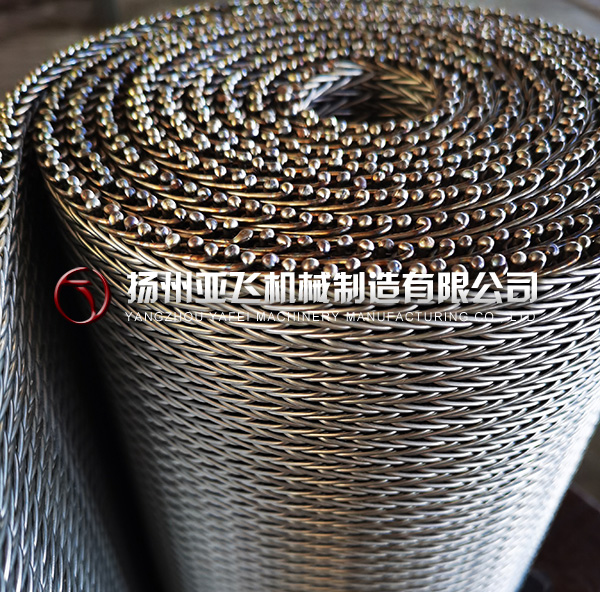 我公司專業研發制造化纖烘干爐網帶,用于化纖物料烘干清洗輸送,一般爐溫100-300度,網帶采用316lcu.或者304材質,網帶耐酸耐堿,網帶鋼絲為圓絲或經過壓扁處理,網帶采用人字形編織方式,孔眼加密,要求表面水平,不刮絲,抗拉強度大,不跑偏,運行平穩。